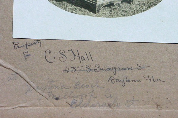 This second address, being in pencil and written in more of a scrawl included the name Eldorado St. but was difficult to decipher—till I went to the Halifax Historical Society Museum in Daytona Beach. There, in a 1935 City Directory, I found the answer—it said, "Charles S. Hall, designer, Daytona Beach Millwork Co., 615 Volusia Ave." Eldorado St. is around the corner from South Seagrave and 2 streets away from what was called Volusai Ave. in 1935 (now called International Speedway Blvd for the other reason Daytona is famous). So—we know that Charles Hall was in East Aurora in 1929 and 1930 and in Daytona Beach in 1935 working as a designer for the Daytona Beach Millwork Co. The R. H. LeSesne studio was also only a few blocks from the South Seagrave Street address so it was a likely choice to select for taking the photos..